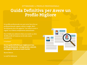 2. Esiste una guida ai freelance dedicata specificamente a questo argomento e realizzata da noi dello staff di AddLance. La puoi trovare qui: Guida Definitiva per Avere un Profilo Migliore
